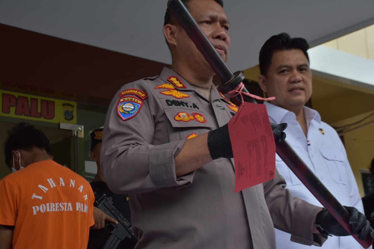Palu- Polresta Palu berhasil mengungkap kasus penganiayaan berat yang mengakibatkan seorang pria meninggal dunia akibat luka tebas di bagian leher. Kasus tragis ini terjadi di salah satu jalan di Kecamatan Ulujadi, Kota Palu, dan kini pelaku berinisial MR telah diamankan beserta barang bukti berupa satu bilah samurai dan satu unit sepeda motor yang digunakan saat kejadian.