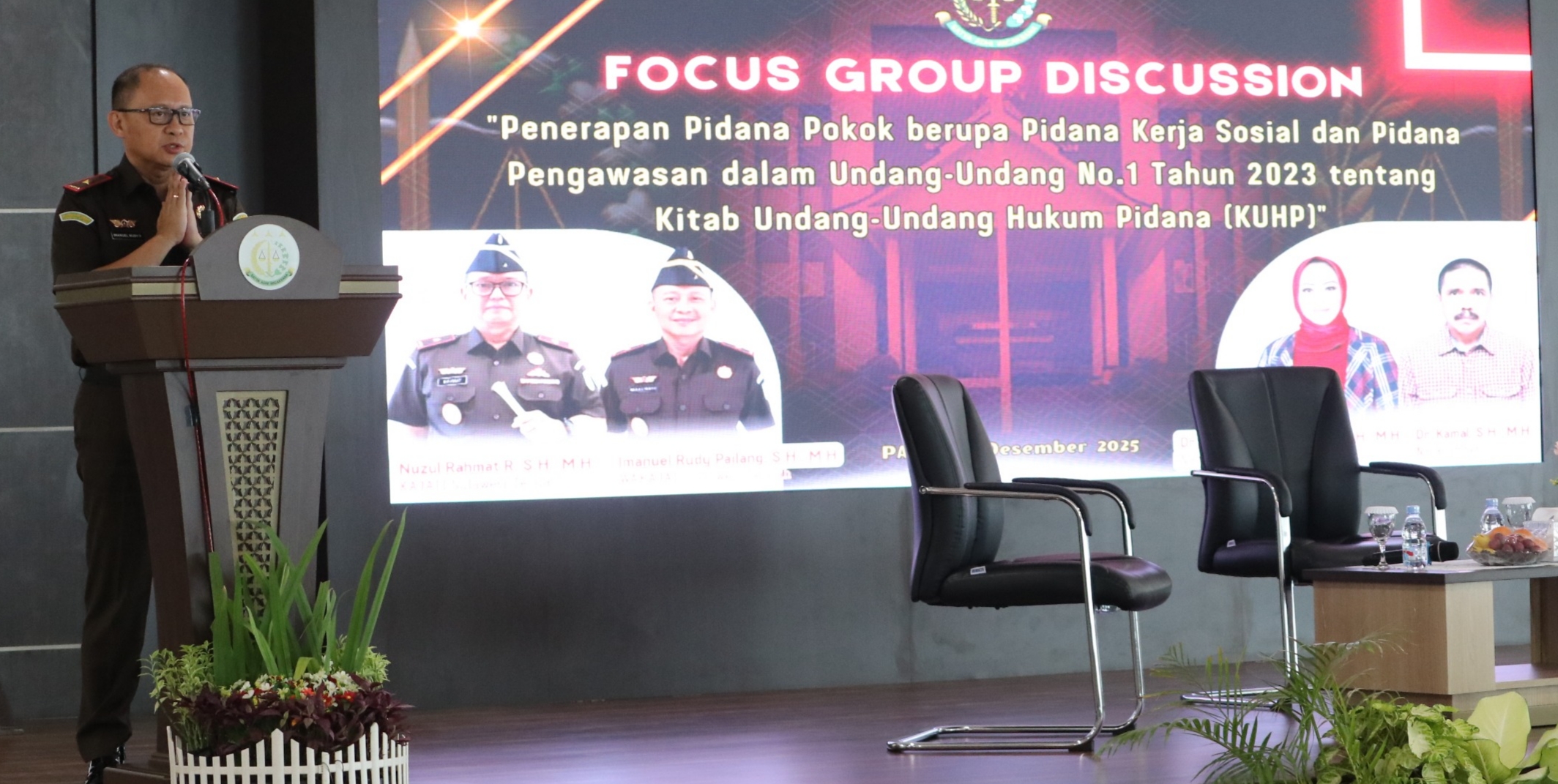 Acara yang dimoderatori Koordinator Kejati Sulteng, Andi Herman, S.H., M.H., menghadirkan narasumber Dr. Hj. Kartini Malarangan, S.H., M.H., dan Dr. Kamal, S.H., M.H. Kegiatan ini diharapkan menghasilkan masukan