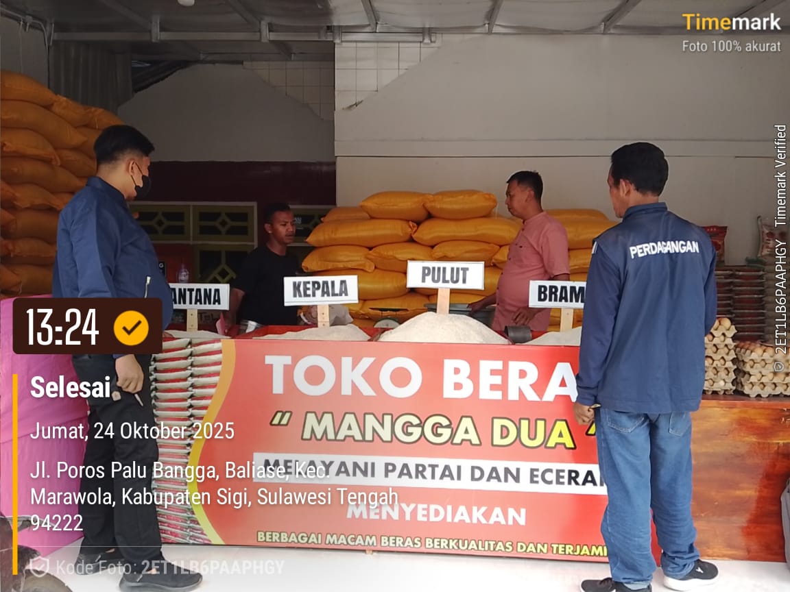Sigi- Jumat, 24 Oktober 2025 pukul 13.00 WITA, Unit Tipidter Satreskrim Polres Sigi bersama Dinas Perindustrian dan Perdagangan Kabupaten Sigi menggelar patroli dan pemeriksaan harga beras di beberapa titik strategis, termasuk Toko Beras Mangga Dua dan Kios Raiysah. Operasi lapangan ini dilakukan untuk memastikan harga jual beras premium dan medium sesuai Harga Eceran Tertinggi (HET) yang ditetapkan melalui Keputusan Kepala Badan Pangan Nasional Nomor 299 Tahun 2025.