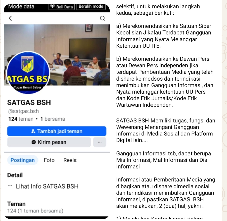 Palu- Komite Keselamatan Jurnalis (KKJ) Sulawesi Tengah menolak keras pernyataan dan narasi yang disampaikan oleh Satuan Tugas BSH melalui media sosial, yang berpotensi menjadi upaya pembungkaman, intervensi, serta pengendalian secara subjektif terhadap kerja jurnalistik.
