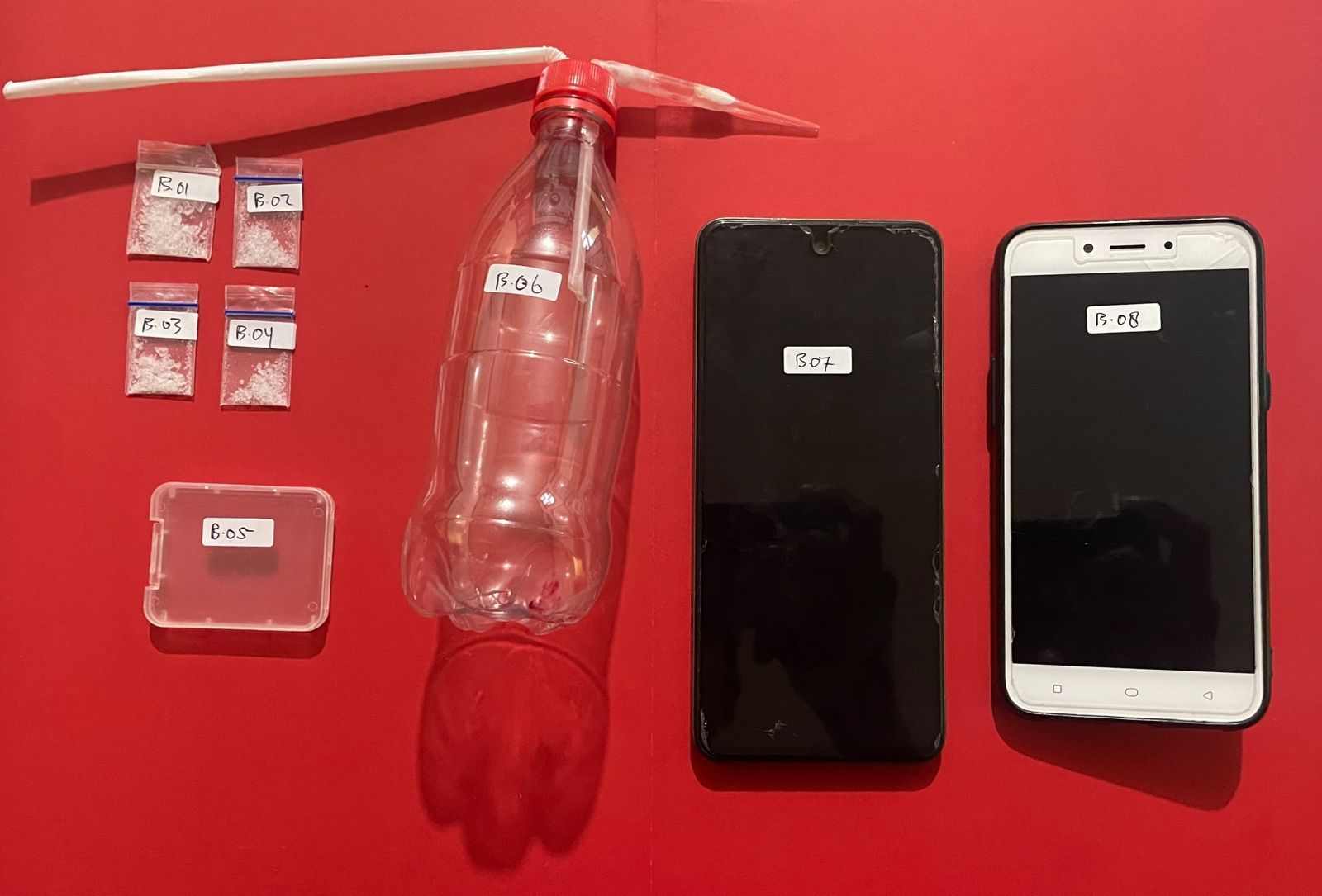 Keduanya diamankan di Jalan Al Jihad, Kelurahan Tavanjuka, Kecamatan Tatanga. Saat dilakukan penggeledahan badan dan tempat tinggal, petugas menemukan barang bukti berupa empat paket yang diduga sabu dengan berat bruto 1,108 gram, alat hisap sabu (bong) lengkap dengan pireks, satu kotak plastik bening, serta dua unit telepon genggam.