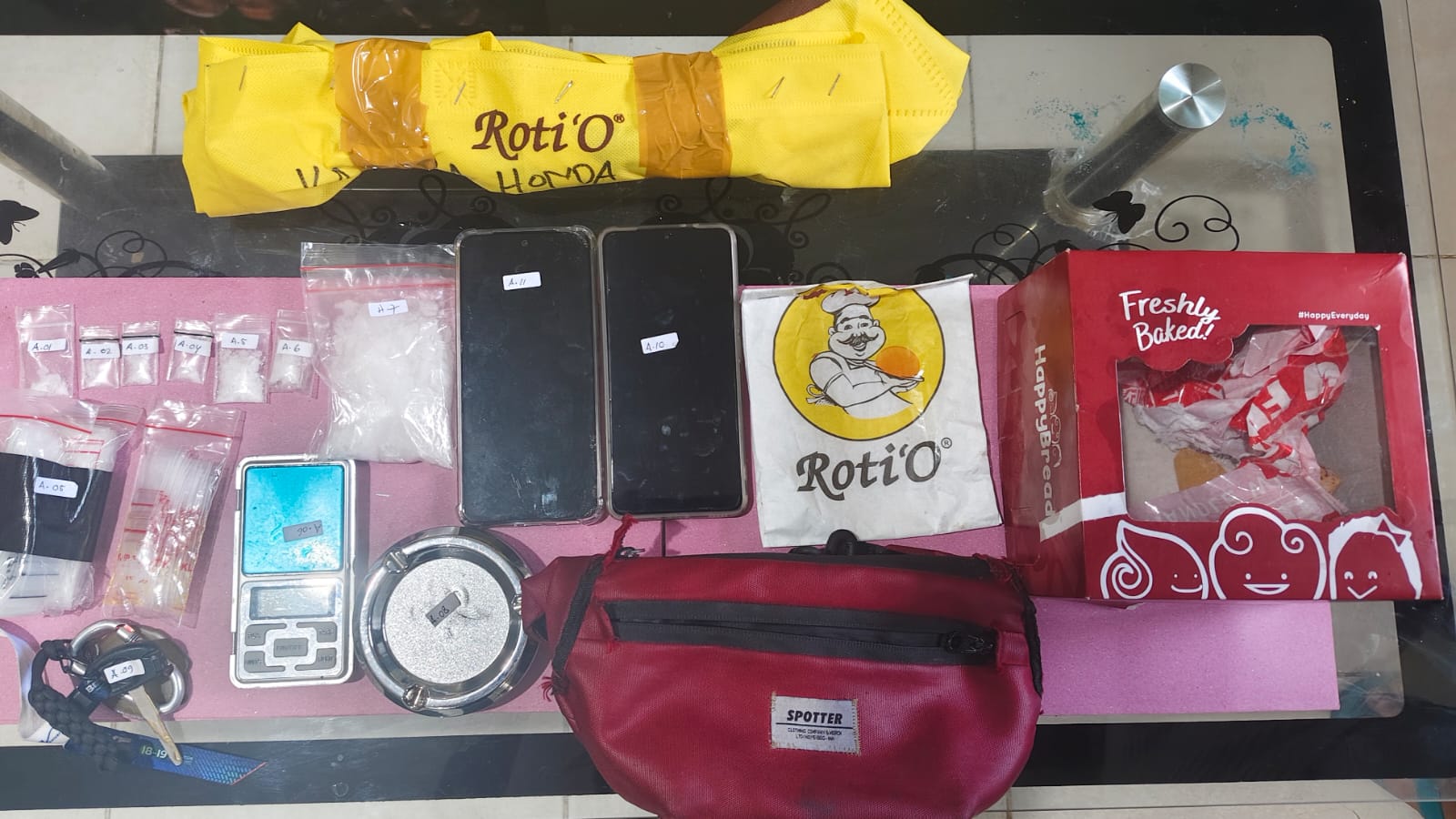 Penangkapan terhadap pelaku R.P.P.U. dilakukan di sebuah kos di Jalan Lalove, Kota Palu. Dari hasil penggeledahan, petugas menemukan empat paket yang diduga sabu seberat bruto 1,529 gram beserta alat pendukung lainnya seperti timbangan digital, plastik klip, dan alat konsumsi.