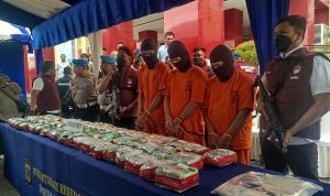 Dengan ancaman hukuman paling singkat 5 tahun dan paling lama 20 tahun penjara. Dan denda paling sedikit 1 Milliar dan paling Banyak 10 Milliar. Ungkap Kasatresnarkoba tersebut.